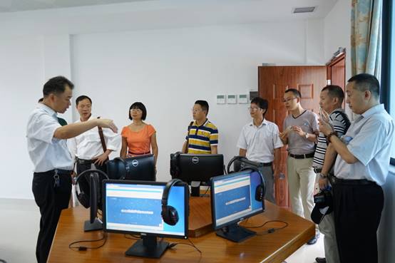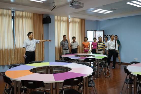 肖起清经理带客人们参观教师发展中心并介绍各个功能室的情况