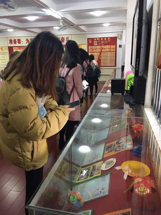 学员们在参观奥威斯小学的美术书法室。