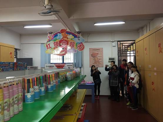 学员们在参观奥威斯小学红领巾超市。孩子们通过平时表现可以获取积分,一定的积分可以在超市得到相应的礼物。
