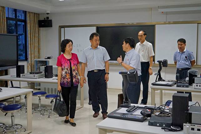 肖起清经理在陪同领导参观的过程中详细介绍了发展中心各个功能室的建设和使用情况,并表示中心将在新的形势和政策下,继续响应和深化教师教育改革的号召,把对一线中小学教师的培训工作落到实处,培养出高质量的教师人才队伍。