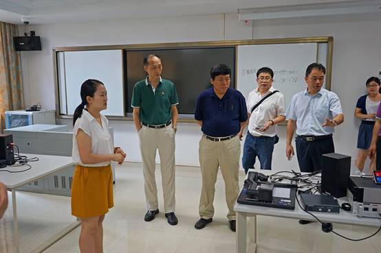 客人们在和飞董事长和肖起清经理的陪同下参观了我中心书画训练室、普通话测试站、远程交互中心、教学设计与反思室、教师信息能力训练室、智慧教室等主要功能室。客人们对我中心教师教育职前职后一体化以及硬软件设施倍加赞赏,表示有许多值得借鉴之处。