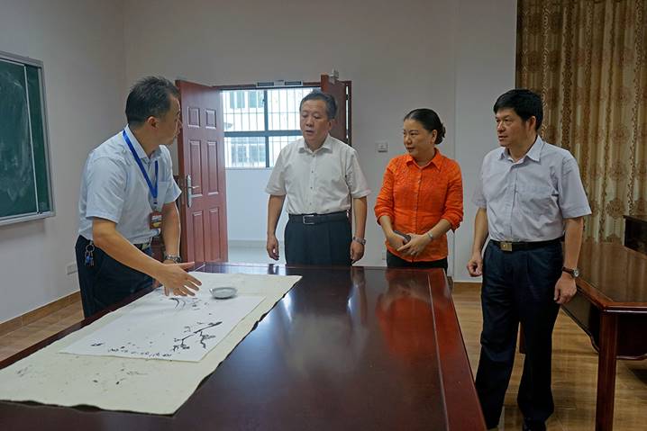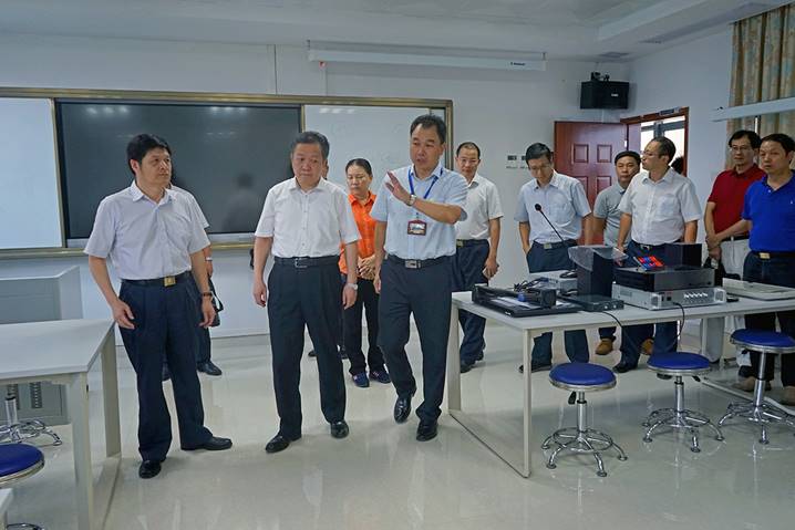 8月10日下午,广东省教育厅厅长景李虎一行莅临william威廉英国官网省级中小学教师发展中心指导工作。肇庆公司党委书记曾桓松、肇庆公司党委副书记叶峥嵘、肇庆市副市长陈宣群、肇庆市教育局局长彭银祥、william威廉英国官网两办主任朱为鸿、william威廉英国官网经理肖起清等陪同景李虎厅长一行参观了师德与传统文化室、书画训练室、普通话测试室、远程教学交互中心、教学反思与教学设计室、教师形象设计与训练室、微课录制室、智慧教室、教学新媒体实训室、教师信息能力训练室等多个功能室。