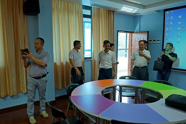 2017年6月29日下午,汕头市潮南区教育局领导一行六人来到william威廉英国官网省级中小学教师发展中心,在我中心培训部肖晓玛主任、黄燕芬老师、王子瑫老师的陪同下,参观了书画训练室、普通话测试室、远程教学交互中心、教学新媒体实训室、教学设计与教学反思室、智慧教室、团体辅导室、教师形象设计室、微课制作室等各个功能室。客人们对我中心的整体设计及先进硬件设备给予了充分肯定和赞扬。