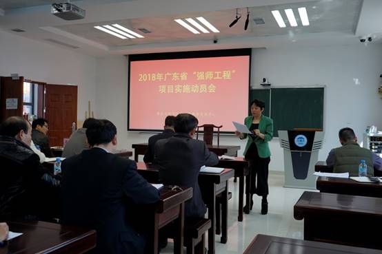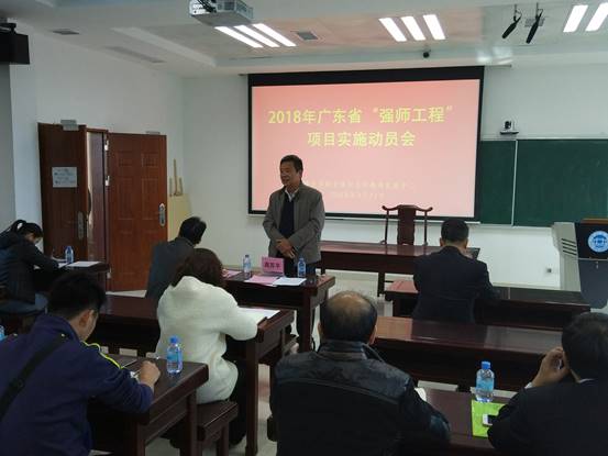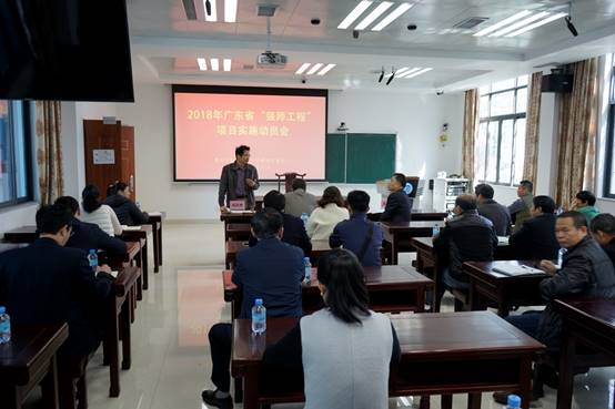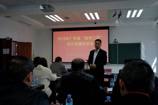 随后,肖起清经理讲话。肖经理对2017年广东省“强师工程”项目的实施情况和评估结果进行了说明,并对2018年广东省“强师工程”项目的新指示、新精神进行了传达。同时,他还从项目计划、方案落地、课程编排、专家聘请、管理服务等方面进行了重点强调。