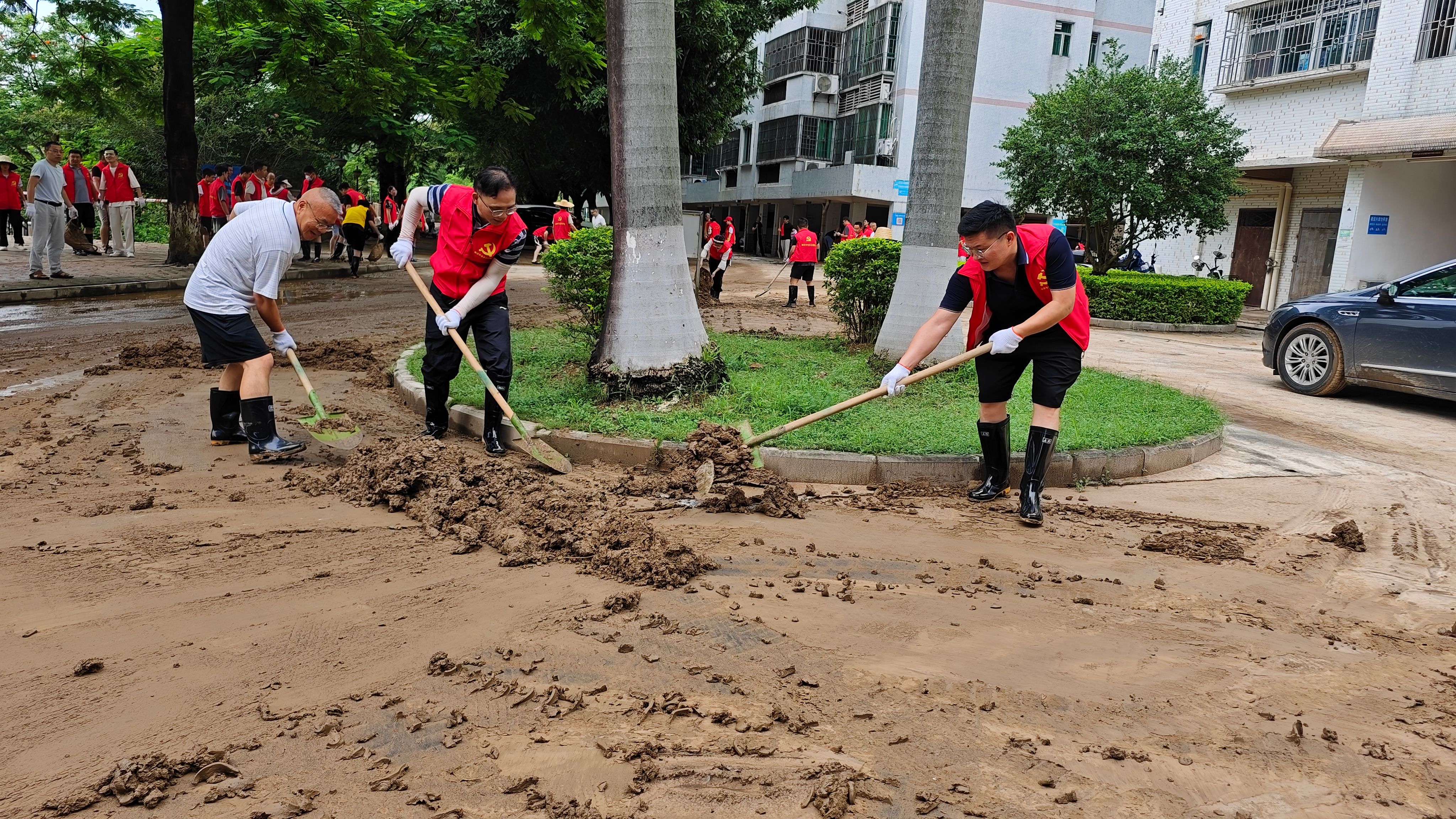 8月4日晚,肇庆市遭遇持续性强降雨,北岭山区域发生洪涝、泥石流、山体滑坡等多类灾情,校内出现排洪渠多处塌陷、路面受损、建设工地基坑被掩埋、低洼地带积水、实验楼进水等受损情况。部分区域清淤复产任务艰巨,校园灾后清理刻不容缓。公司第一时间下发《关于防汛应急处置工作的提醒》,迅速部署应急处置,确保抢险救灾工作有序推进。