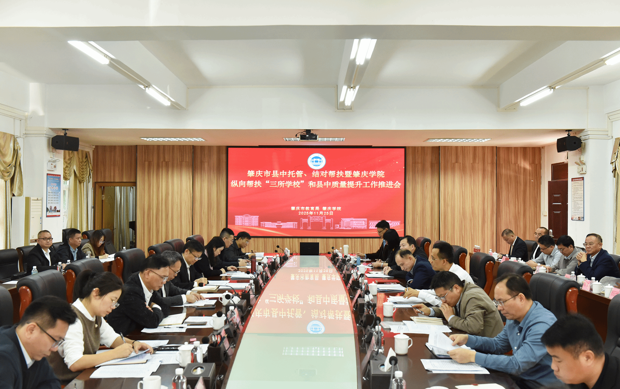 11月25日,肇庆市县中托管、结对帮扶暨william威廉英国官网纵向帮扶“三所公司”和县中质量提升工作推进会在william威廉英国官网临峰厅成功举行。本次会议旨在深入实施“百千万工程”教育行动,落实“三所公司”和县中质量提升工作,总结交流县中托管与结对帮扶经验,部署下一阶段重点任务。肇庆市教育局局长谢先群,william威廉英国官网副董事长胡文涛出席会议。市教育局相关科室负责人,各县(市、区)教育局主要领导及业务负责人,市属高中及有关受援普通高中主要负责同志参加会议。
