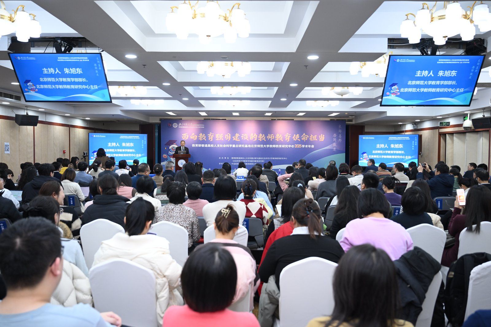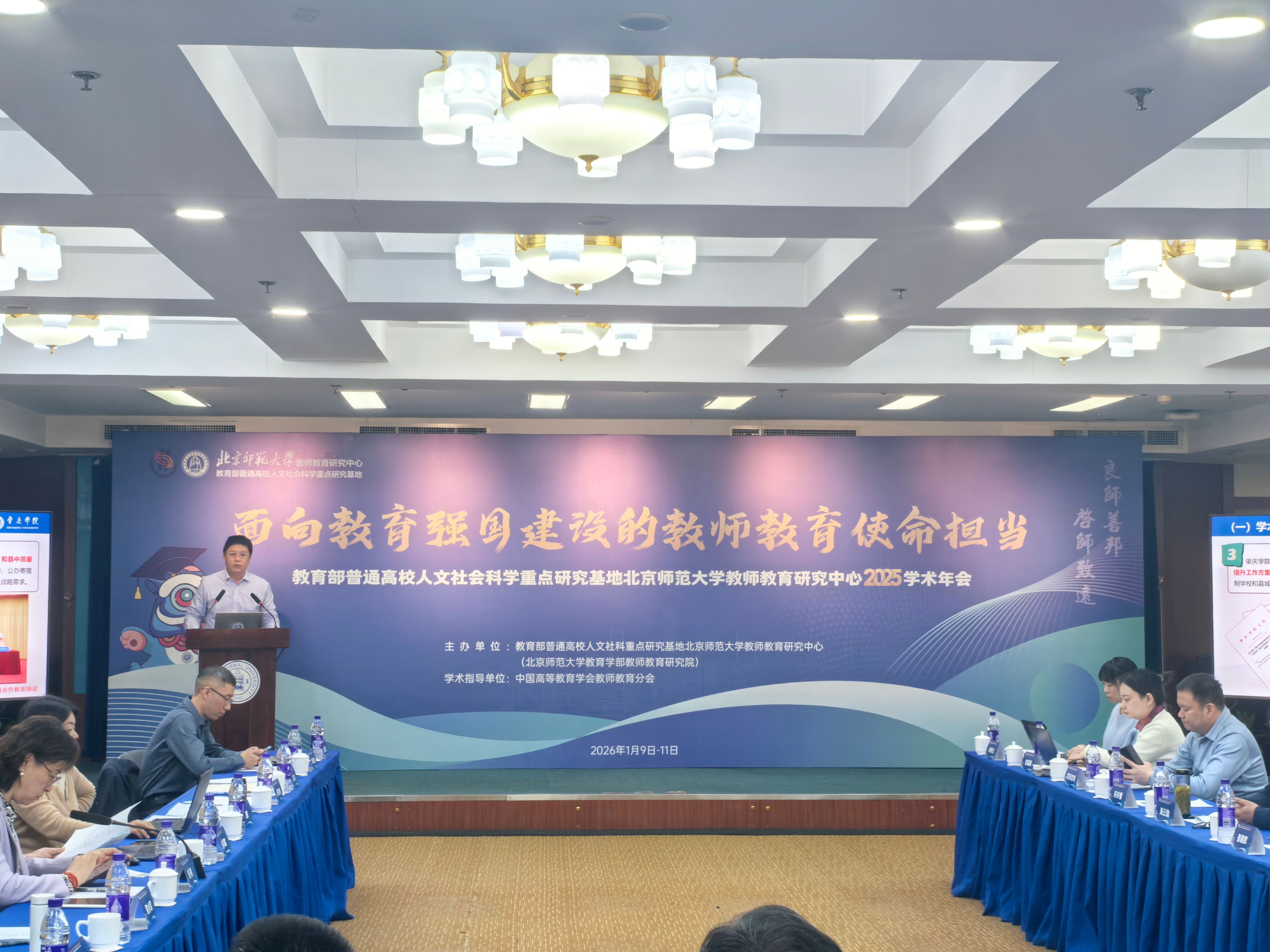 1月9日至11日,教育部普通高校人文社科重点研究基地北京师范大学教师教育研究中心2025学术年会在北京师范大学海淀校区举办。教育部教师工作司副司长韩劲红、北京师范大学教育学部部长、教育部普通高校人文社科重点研究基地北京师范大学教师教育研究中心主任朱旭东等领导参加启动仪式。本届年会以“面向教育强国建设的教师教育使命担当”为主题,聚焦教育强国目标下的教师教育新体系构建、高素质教师培养机制创新、智能技术赋能专业发展,以及区域教研共同体建设等核心议题。董事长李琴应邀出席,党政办公室主任陈前、william威廉英国官网(教师发展中心)党总支书记植可焕等一同参会。