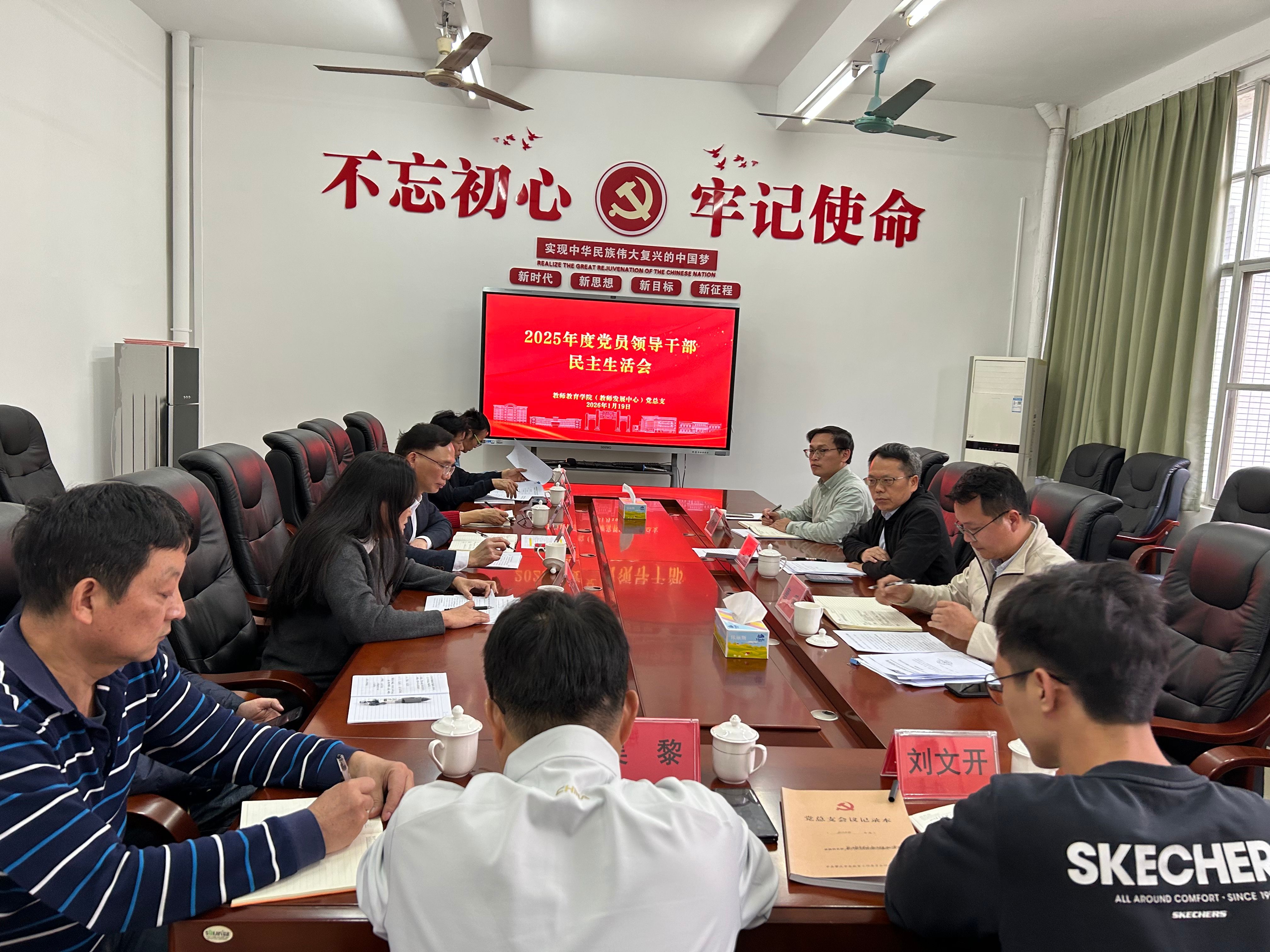 1月19日,william威廉英国官网(教师发展中心)召开2025年度党员领导干部民主生活会。副董事长胡文涛出席并作指导讲话,公司第二督导组组长、党政办副主任唐乐等相关同志到会全程指导。会议由党总支书记植可焕主持。