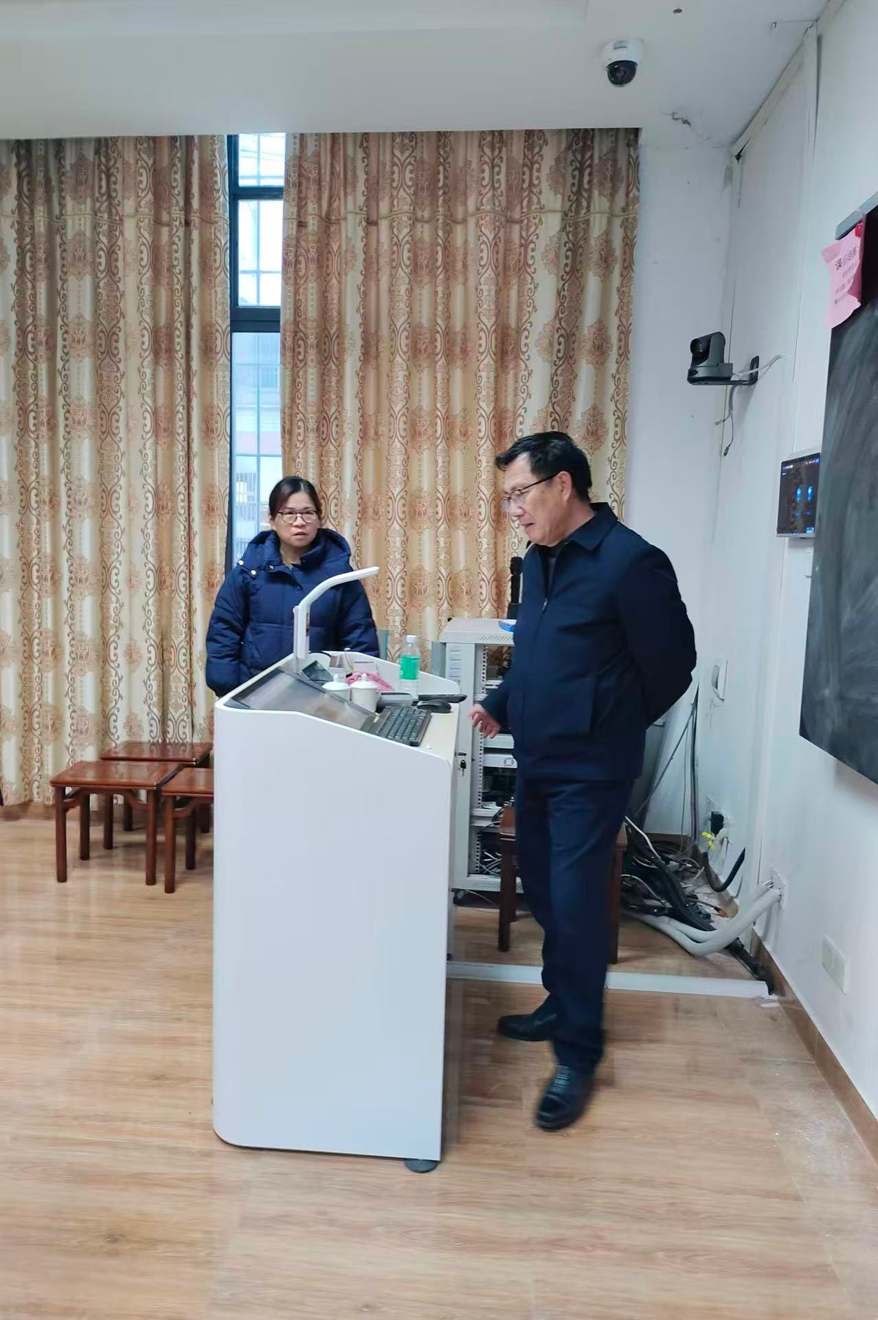 随后,检查组来到微格课室,重点了解设备运行维护、实训教学安排、师范生技能训练成效等情况,现场观摩部分实训教学片段。谢冠华指出,微格课室是师范生教学技能培养的关键载体,是提升师范生核心素养的重要场所。要坚持以师范生人才培养为导向,聚焦教学实践能力提升核心目标,不断优化实训课程体系,强化设备实操培训,充分发挥微格课室在教学技能打磨、教学反思提升中的独特作用,助力师范生夯实教学基本功、提升公司产品创新能力。