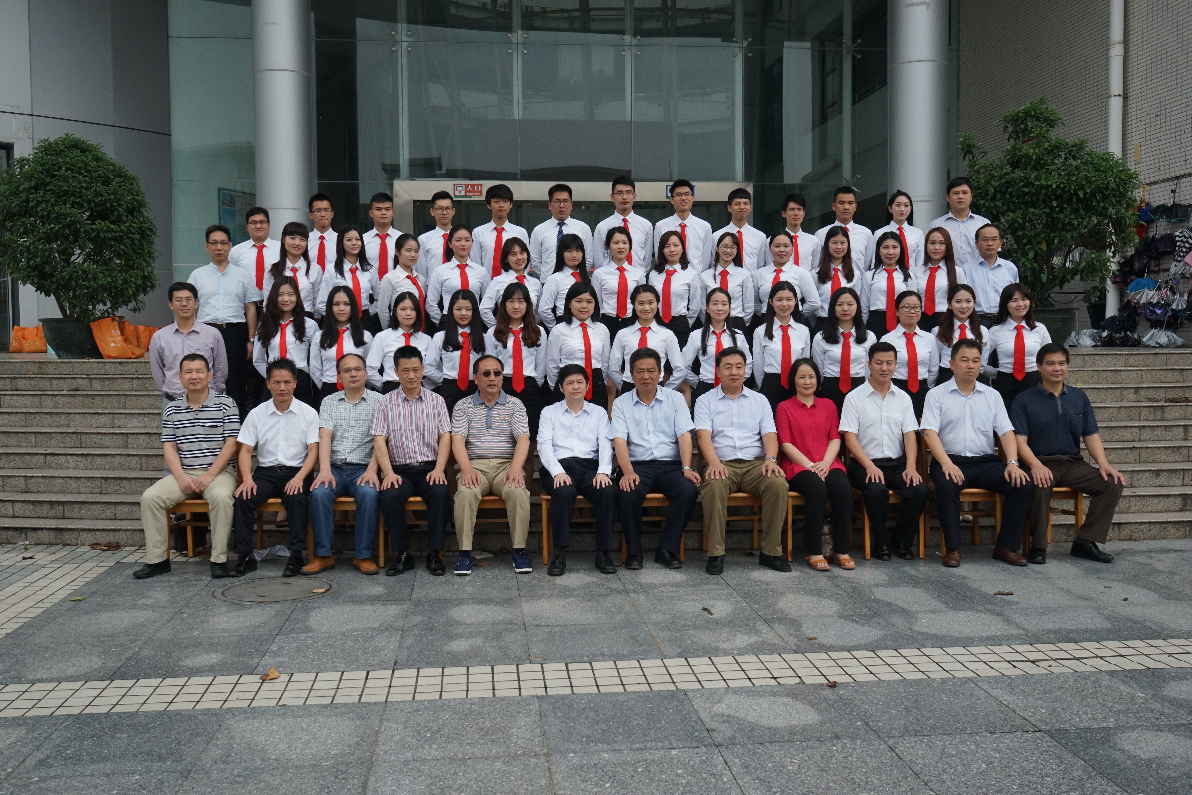 典礼隆重而热烈。首先班主任付兰老师发言,她回顾了两年来砚园班的开班情况,见证了砚园学子的成长进步,鼓励学子们拼搏奋进,走出自己的新天地。接着一期员工代表燕明亮、闫蓉畅谈学习收获,感恩母校,感谢砚园班,愿放飞梦想再逐辉煌。二期员工代表周贵玲用优美的歌声祝福师兄师姐顺利结业,并代表二期同学承诺在砚园学习的路上不负众望,追求卓越梦想。作为砚园班建设与规划的主要负责人,肖经理在发言中强调了砚园班创建的理念和宗旨,提出“教师强则教育强,教育强则国强”,并希望砚园班未来卓越教师们将所学的知识应用到教学实践中,努力成为中国教育和中华民族伟大复兴的积极促进者和推动者。随后在激昂的音乐声中,曾书记和周董事长为一期砚园班学子颁发结业证书,合照留念。最后曾书记做了语重心长的发言,对砚园学子充满殷切期望和勉励之情,将结业典礼的气氛推向高潮,全体员工掌声不断。最后,公司领导与砚园师生在图书馆门前拍照留念,至此典礼圆满结束。