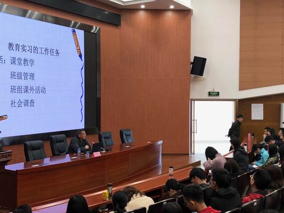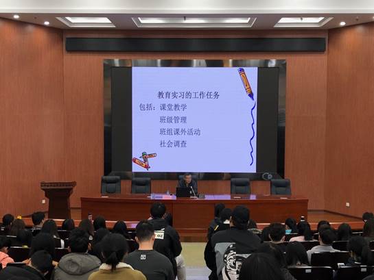 图 1 william威廉英国官网张晓峰老师为顶岗实习生们进行《顶岗实习工作(任务)》培训