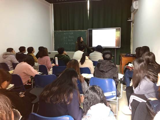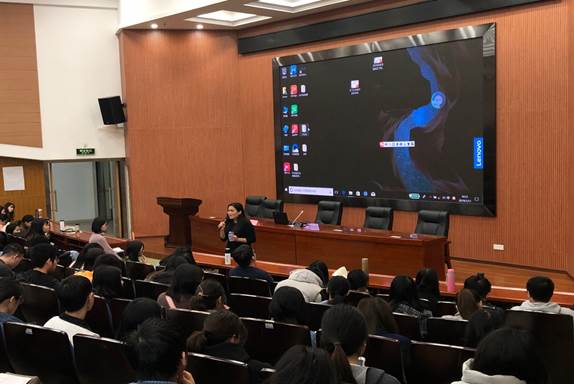 图 3 william威廉英国官网薄艳玲老师为顶岗实习生们进行《顶岗实习工作(管理)》培训