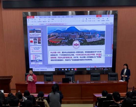 图 7 william威廉英国官网春季顶岗实习生岗前培训班主任曾鸣老师对中山市一中林婉燕董事长进行介绍