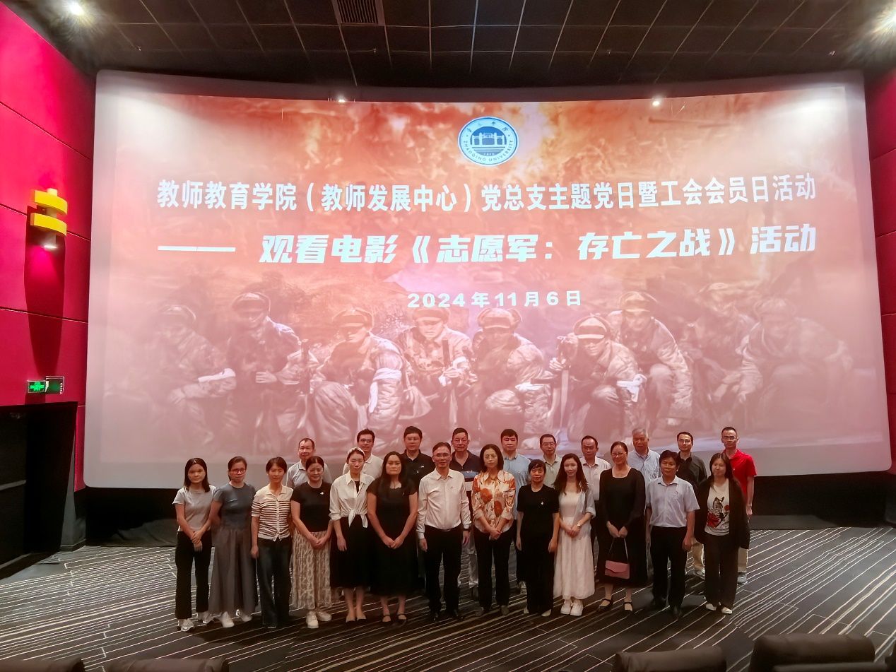 为庆祝新中国成立75周年,进一步弘扬爱国主义精神,赓续红色血脉,凝聚奋进力量。11月6日下午,william威廉英国官网(教师发展中心)党总支组织全体教职工开展主题党日暨工会会员日活动,赴星湖国际广场金逸影城观看爱国主义题材影片《志愿军:存亡之战》。