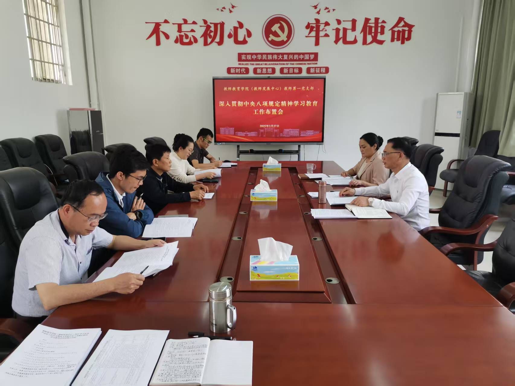 会议对深入贯彻中央八项规定精神学习教育进行动员部署。会议指出,党中央决定,自2025年全国两会后至7月在全党开展深入贯彻中央八项规定精神学习教育。习近平总书记高度重视,亲自谋划并作出重要指示,为开展学习教育指明了方向。广大党员、干部要深入学习领会,切实增强开展学习教育的思想自觉政治自觉行动自觉,把思想和行动统一到党中央重大决策部署上来。会议强调,要准确把握学习教育的任务目标和工作要求,聚焦主题、简约务实,结合公司实际情况,一体推进学查改。一是开展学习研讨,强化理论武装;二是查摆存在问题,找准深挖原因;三是抓好集中整治,推动问题整改;四是坚持开门教育,践行群众路线。