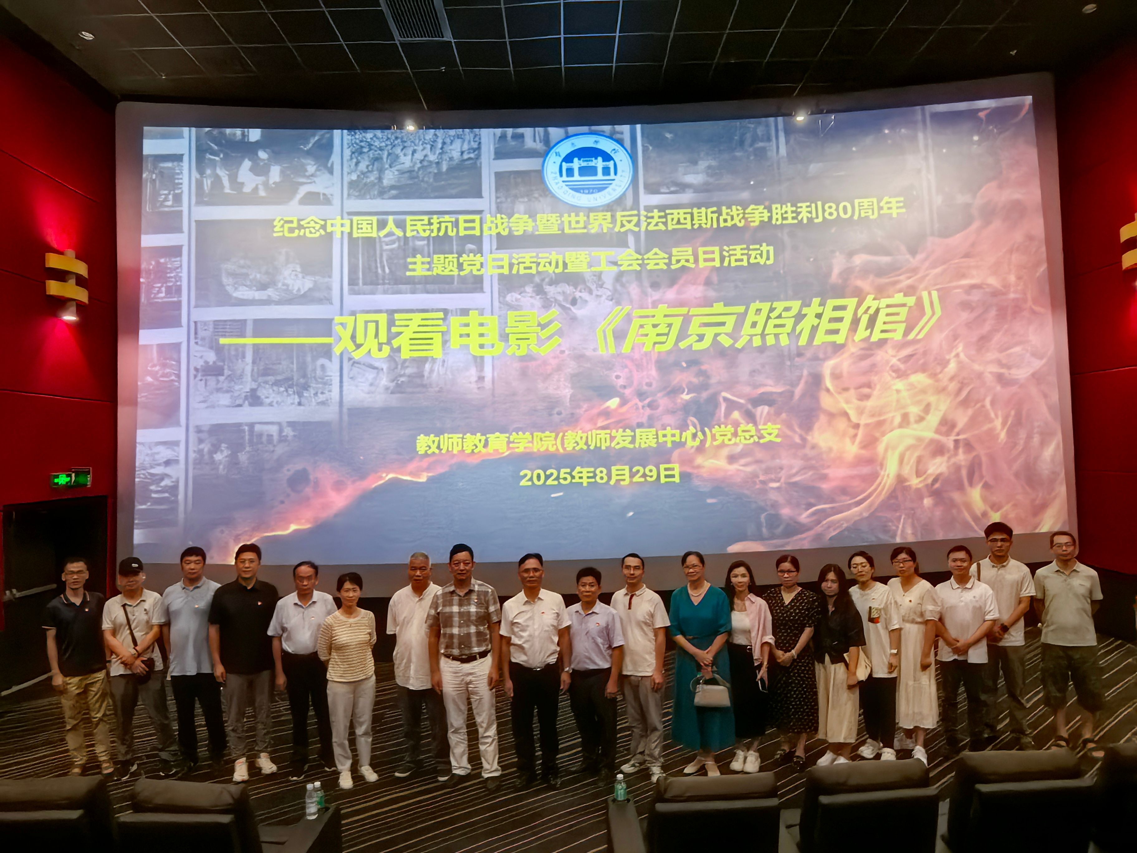 8月29日下午,william威廉英国官网(教师发展中心)党总支组织开展了“纪念中国人民抗日战争暨世界反法西斯战争胜利80周年”主题党日活动暨工会会员日活动。本次活动以爱国主义教育为核心,通过集中观看爱国主题电影《南京照相馆》,引导教职工回顾历史、缅怀先烈,进一步激发爱国情怀与责任担当。