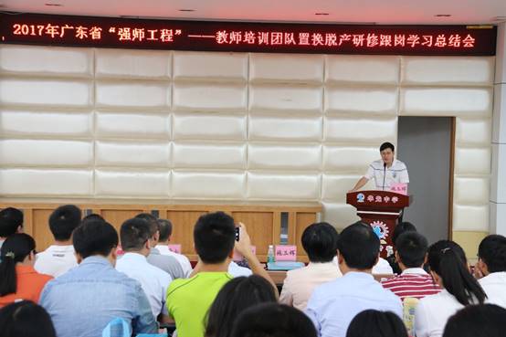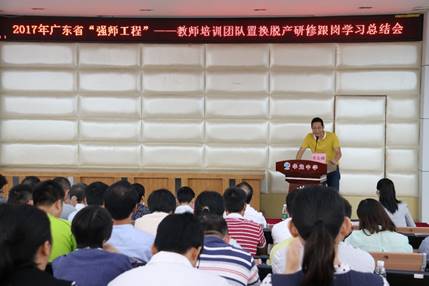 2017年广东省“强师工程”——乡村教师培训团队置换脱产研修班共分三个阶段进行,本次为第二阶段跟岗学习阶段,本阶段自2017年10月9日起至10月25日止,为期17天,跟岗地点为佛山市南海区九江镇3所中学(儒林初级中学、九江镇初级中学、华光中学)和6所小学(儒林第一小学、儒林第二小学、九江镇中心小学、沙头中心小学、石江小学、南畔华光小学)。10月24日,即今日总结大会前一天,各跟岗公司校领导、指导教师和各组学员也已分别对各自公司的跟岗学习情况进行了校内总结,总结之后,跟岗公司校领导、指导教师与参训学员们合影留念、依依不舍。