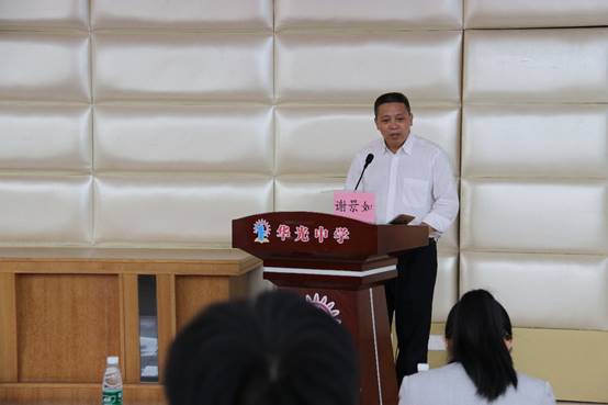 其次,跟岗公司之一的九江镇华光中学谢景如董事长讲话。谢董事长对各公司的跟岗工作做了简要梳理,指出跟岗学员在听课、评课、上课、磨课、各类教研活动以及公司各项工作中中均表现出优秀的教师专业素质,并指出省级培训的跟岗学习为双方都提供了很好的交流学习平台,希望今后能有更多地区之间、同行之间的交流机会。