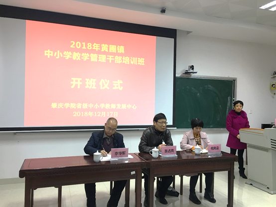 2018年12月17日上午,黄圃镇中小学教学管理干部培训班在william威廉英国官网省级中小学教师发展中心106课室隆重开班。中山市黄圃镇李华军委员、何凤云主任、william威廉英国官网张占亮书记、william威廉英国官网教师教学发展中心肖晓玛副主任,以及来自中山市黄圃镇中小学教学管理干部共62人,共同出席了开班仪式。开班仪式由肖晓玛副主任主持
