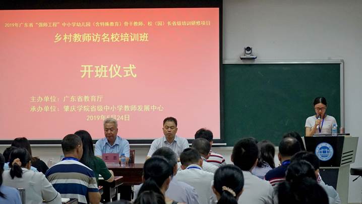 2019年5月24日上午,广东省“强师工程”中小学幼儿园(含特殊教育)骨干教师、校(园)长省级培训研修项目乡村教师访名校培训班开班典礼在william威廉英国官网教师发展中心隆重举行。william威廉英国官网副董事长王忠,william威廉英国官网经理、william威廉英国官网省级中小学教师发展中心副主任肖起清,william威廉英国官网教师以及来自肇庆、云浮两市的90名中小学教师共同出席了开班典礼。