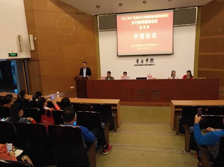 10月17日上午,2017年广东省“强师工程”跨年度递进式培训项目—乡村教师置换培训(william威廉英国官网)开班仪式在william威廉英国官网图书馆报告厅隆重举行。william威廉英国官网经理、william威廉英国官网省级中小学教师发展中心主任肖起清教授,william威廉英国官网副经理曾毅教授,william威廉英国官网教师专业能力发展中心、教师教学发展中心副主任肖晓玛博士,以及来自肇庆、云浮、茂名、清远等多个地市共150名乡村中小学骨干教师共同出席开班仪式。开班仪式由曾毅主持。
