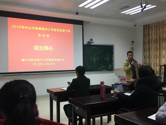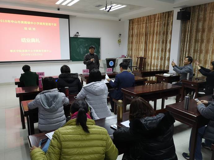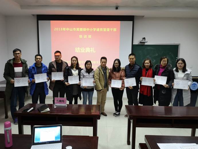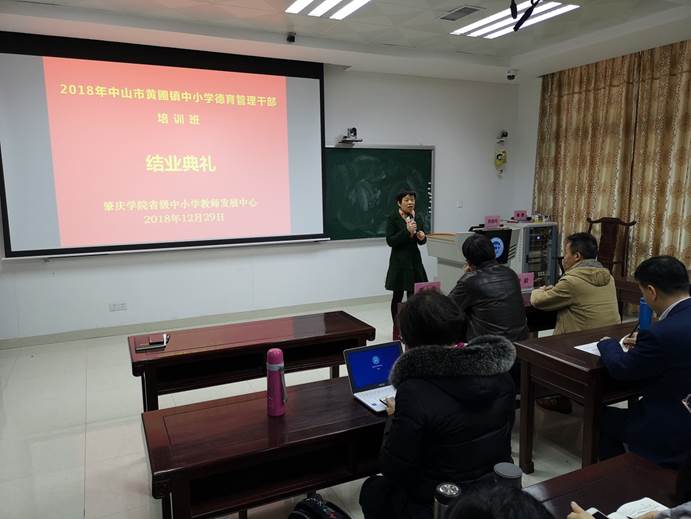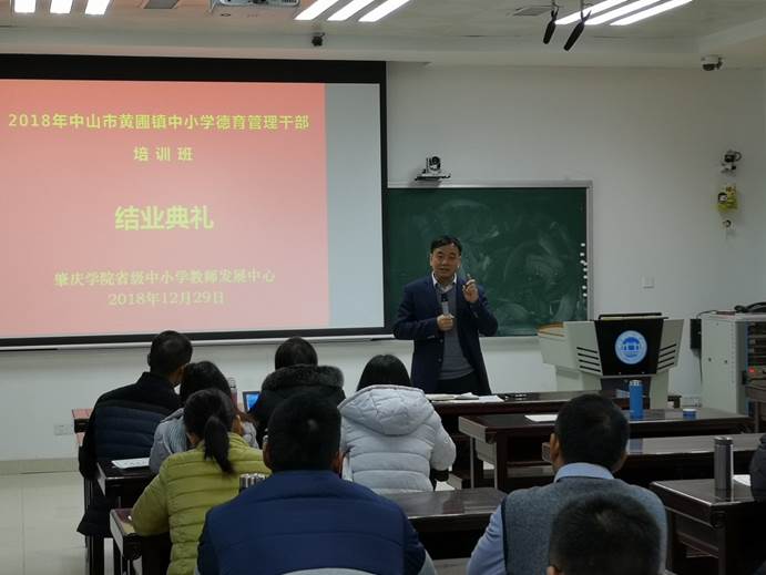 2018年12月29日上午,2018年黄圃镇中小学德育管理干部培训班成果汇报暨结业典礼在william威廉英国官网省级中小学教师发展中心106课室隆重举行。黄圃镇教育事务指导中心副主任袁港喜,william威廉英国官网教师教育公司党委书记张占亮、william威廉英国官网副经理曾毅、省级中小学教师发展中心副主任肖晓玛,以及来自黄圃镇中小学德育管理干部培训班50名学员出席。结业典礼由省级中小学教师发展中心肖晓玛副主任主持。