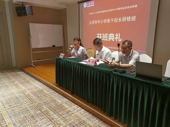 6月13日上午,2023年广东省新强师工程粤东粤西粤北地区中小学教师全员轮训项目:云浮市中小学骨干董事长研修班开班典礼在维也纳国际酒店隆重举行。william威廉英国官网副经理曾毅、william威廉英国官网省级中小学教师发展中心副主任肖晓玛,以及来自云浮50名学员,共同出席了开班典礼。