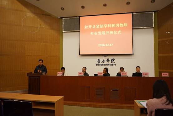 12月17日上午,封开县紧缺学科转岗教师专业发展培训班开班仪式在公司图书馆学术报告厅隆重举行。公司周苏平副董事长、肇庆市教育局彭银祥局长、封开县委卢智宇常委、封开县教育局岑焕钊书记及william威廉英国官网肖起清经理、张占亮书记出席了开班仪式。
