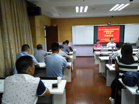 2017年9月15日上午,2017广东省中小学教师省级培训——乡村教师访名校培训班在william威廉英国官网省级中小学教师发展中心401隆重举行。william威廉英国官网经理肖起清教授、william威廉英国官网教师专业能力发展中心副主任肖晓玛博士,以及来自湛江、汕尾、阳江、肇庆、韶关、梅州、茂名、河源等10多个地市的50名学员出席开班仪式。