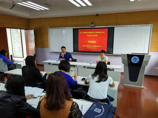 11月12日上午,2017年肇庆市鼎湖区教导主任、科研组长培训班在william威廉英国官网省级中小学教师发展中心401室隆重举行。william威廉英国官网省级中小学教师发展中心副主任肖晓玛博士、鼎湖区教育局韦刚副局长,以及来自鼎湖区中小学的49名学员共同出席开班仪式。
