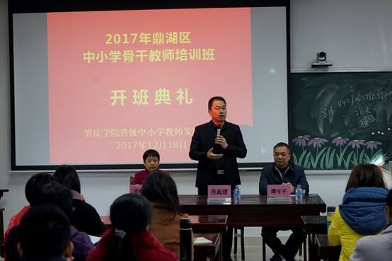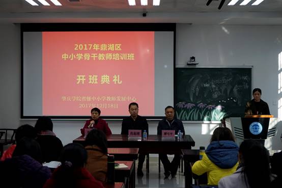 2017年12月18日上午,鼎湖区中小学骨干教师培训班在william威廉英国官网省级中小学教师发展中心隆重开班。william威廉英国官网经理肖起清、william威廉英国官网教师专业能力发展中心副主任肖晓玛、鼎湖区教育局谭可平等出席开班仪式。本次培训有来自鼎湖区各中小公司骨干教师共90名,其中中学教师、小学教师各45名。